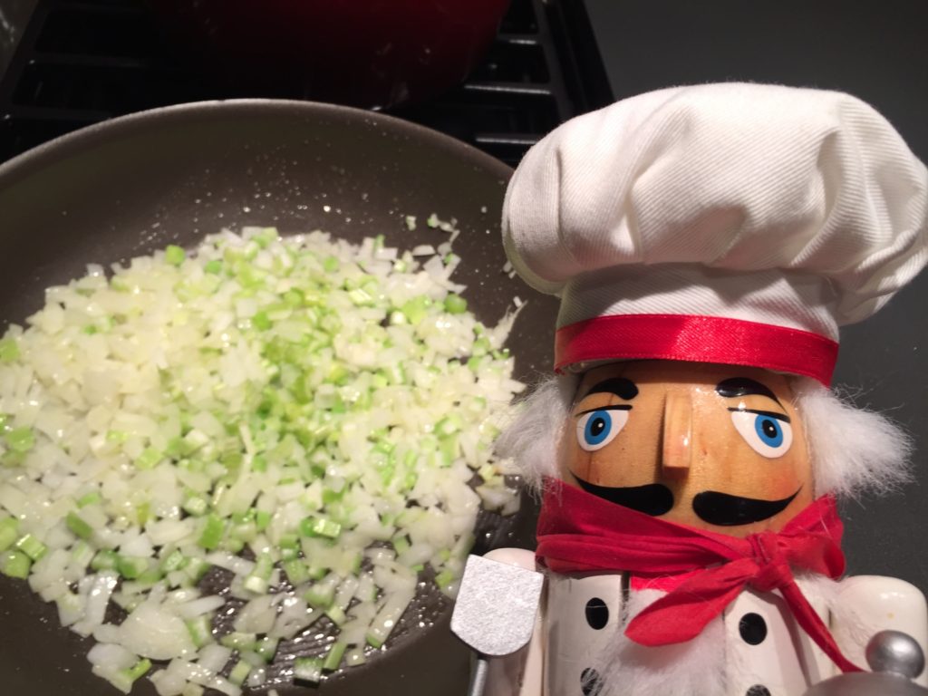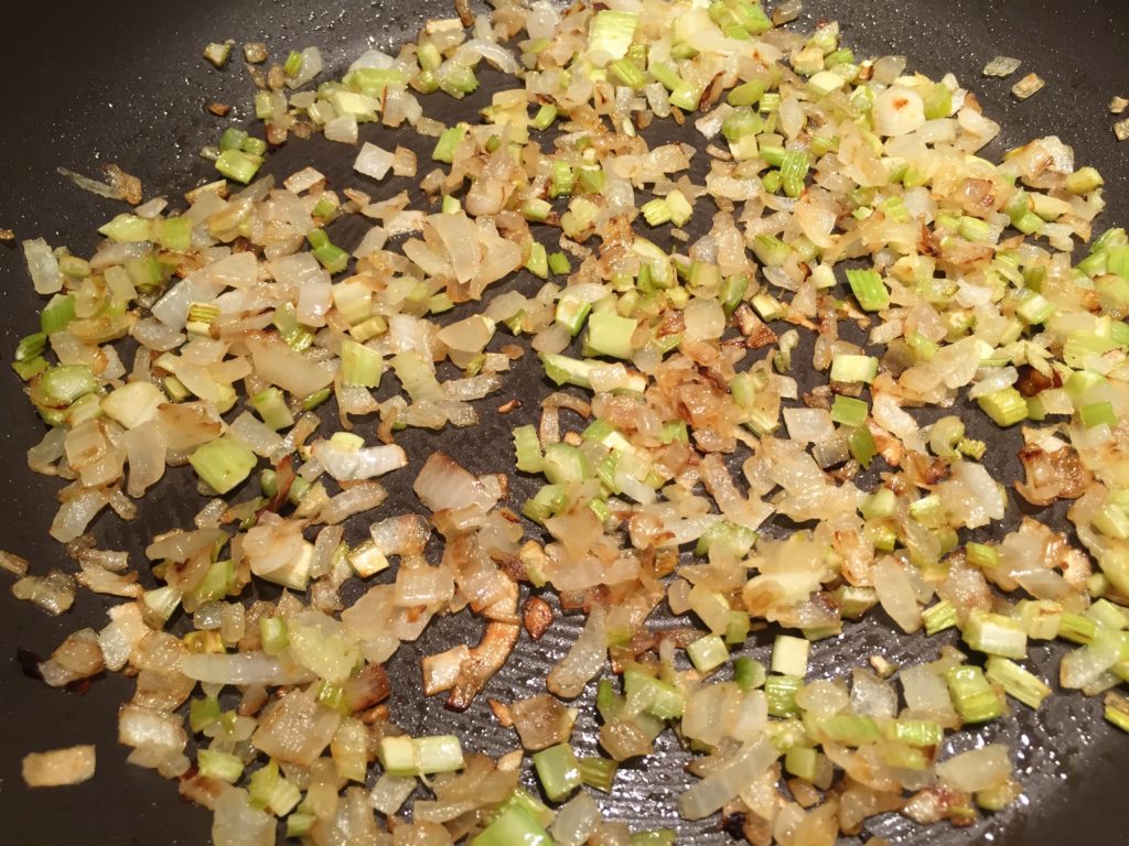 Preheat oven to 350°F. Heat a skillet on medium high heat. Heat the olive oil in the pan. Add the onion and celery.