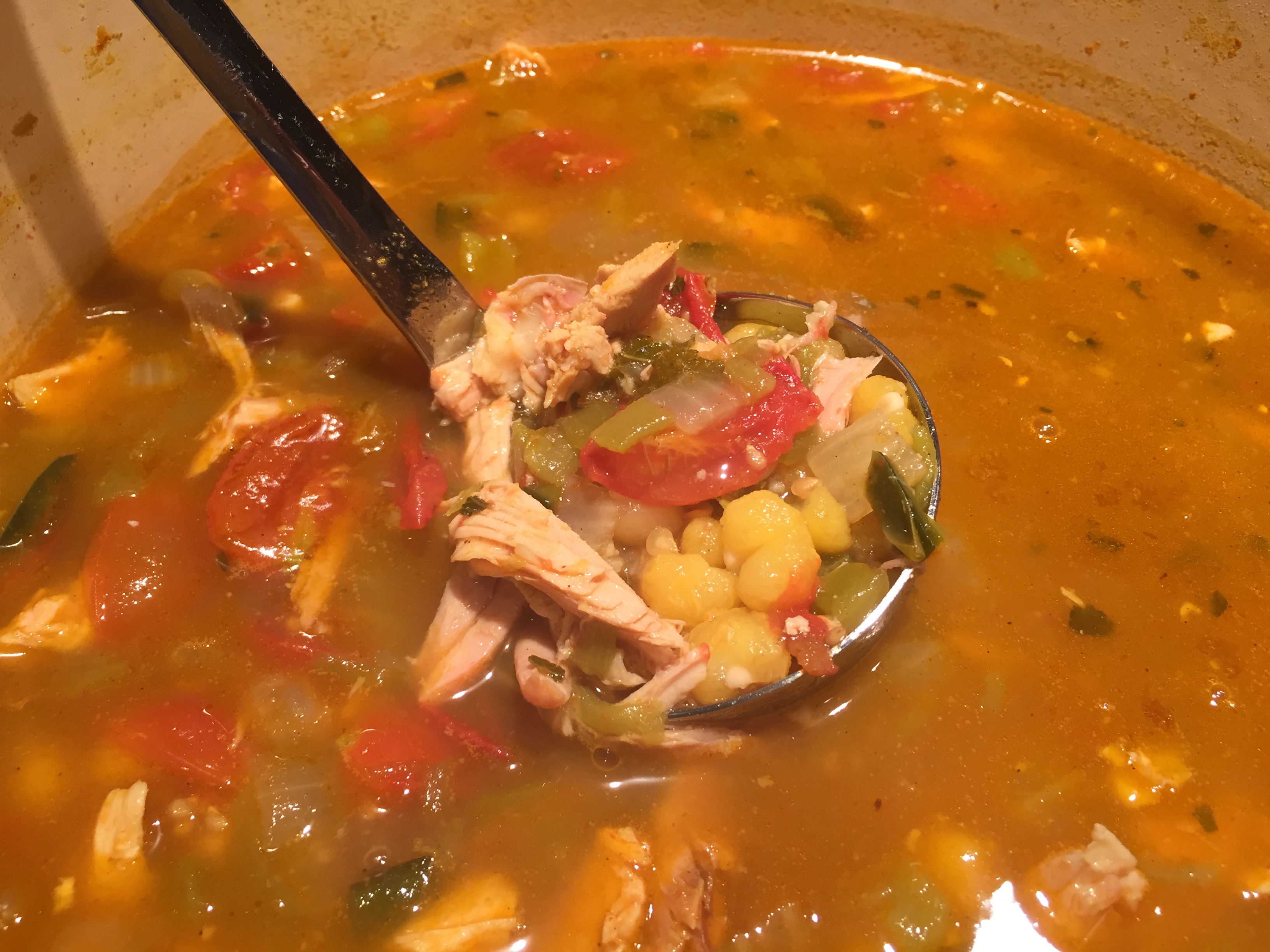 Warm your soul with this rich and tasty Mexican stew made with hominy (Pozole), chicken & chili peppers that are swimming in a warm bath of homemade stock.