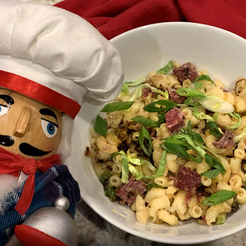 Make this Corned Beef Mac & Cheese. It’s an easy, cheesy comfort food in a bowl. If you’re like me, you cooked a large Corned Beef & Cabbage Dinner because it so delicious. However, you are tired of eating the same meal after a day or two.
