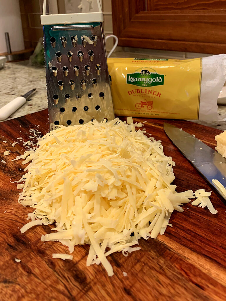 - 5.75 Ounces Irish White Cheddar Cheese (2 cups – shredded)