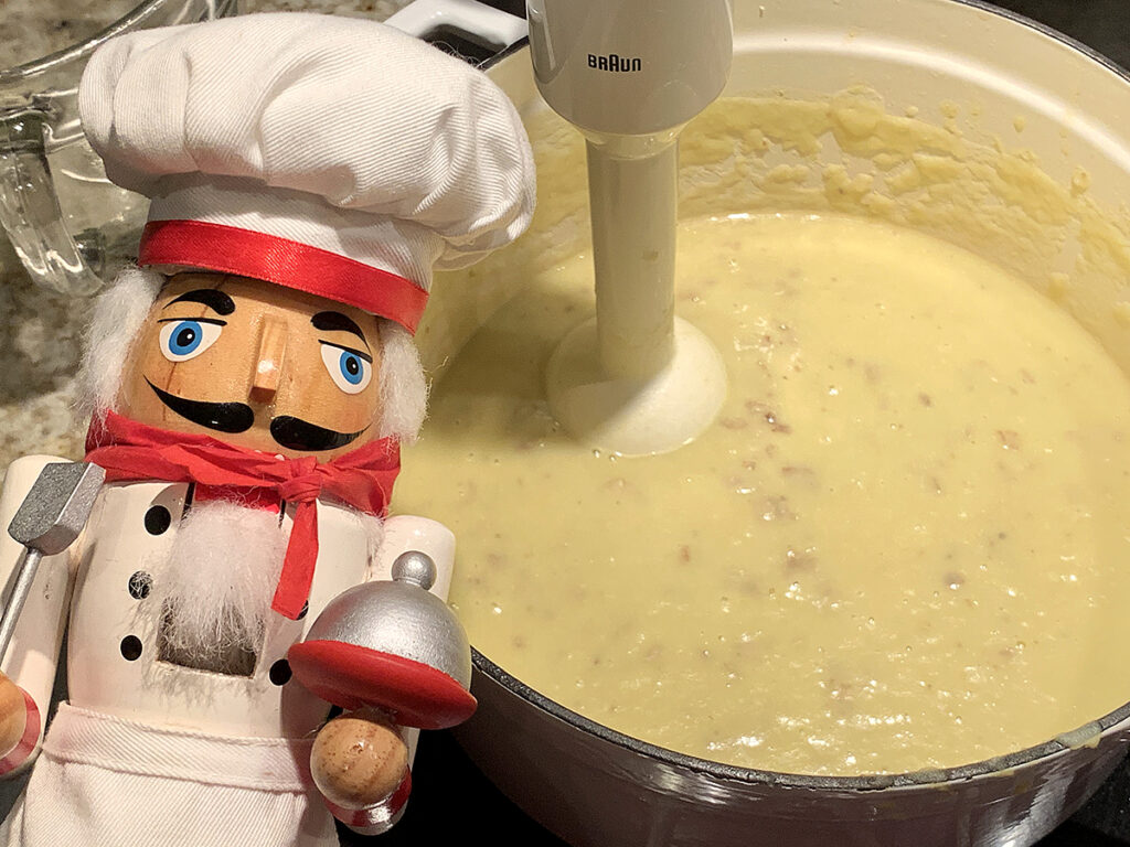 Purée the contents of the pot with a stick blender until smooth. If you don’t have a stick blender you can do this in batches in a stand blender, but be very careful when removing the lid of the blender as hot liquids can create pressure and burst out and burn you.