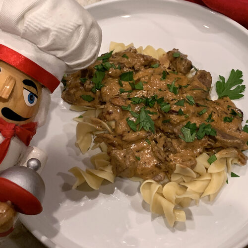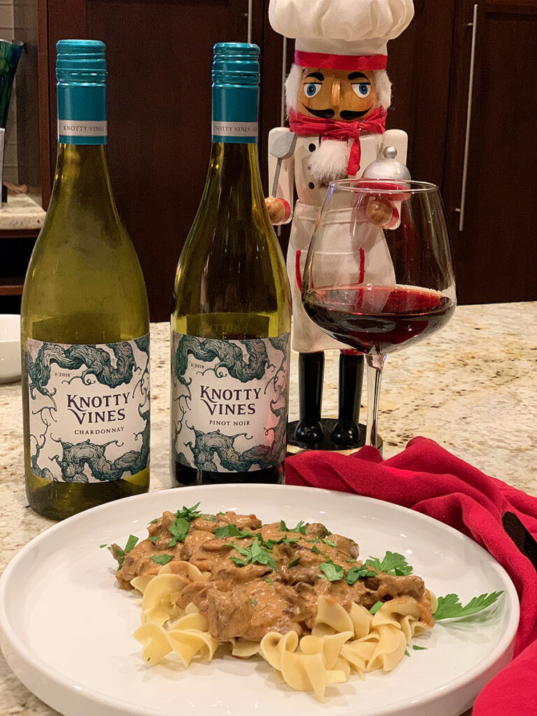 I’m not selling myself as a wine expert, but I know what I like and I know what tastes good both inside this stroganoff and out (on the table). I always use a dry white wine for the sauce, but red goes nice with the venison (or beef).